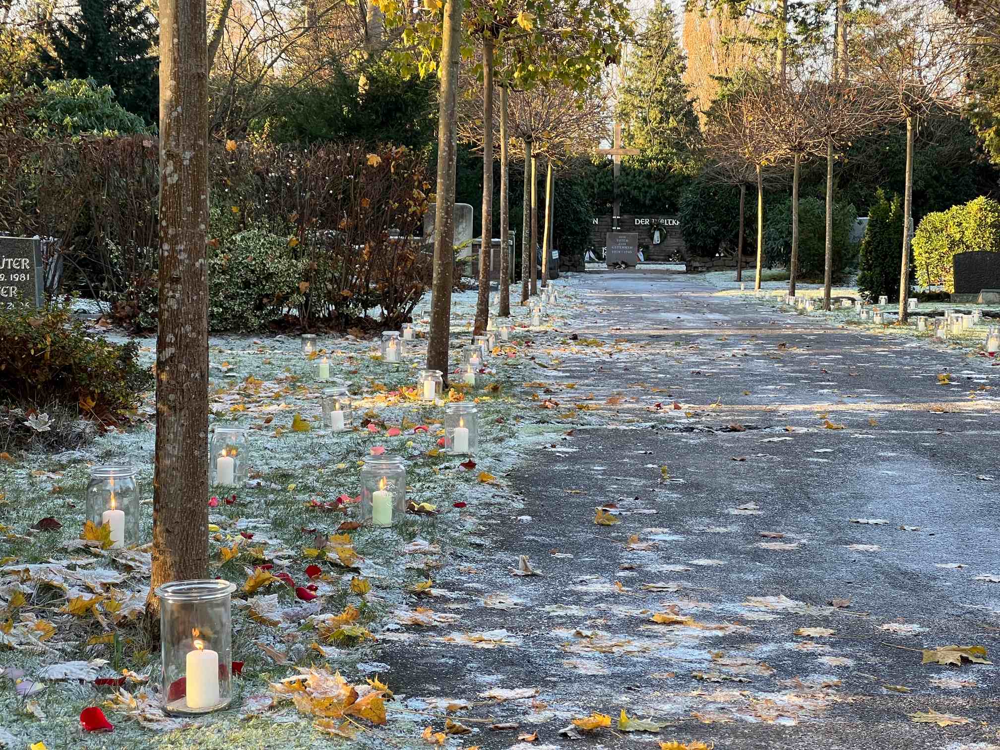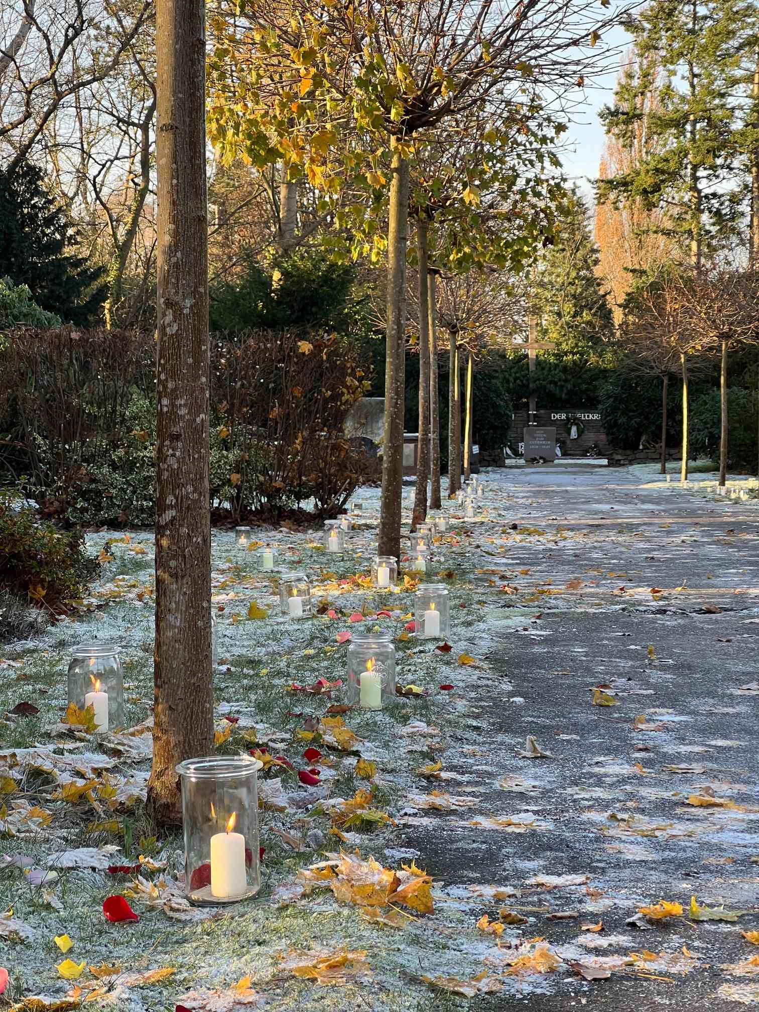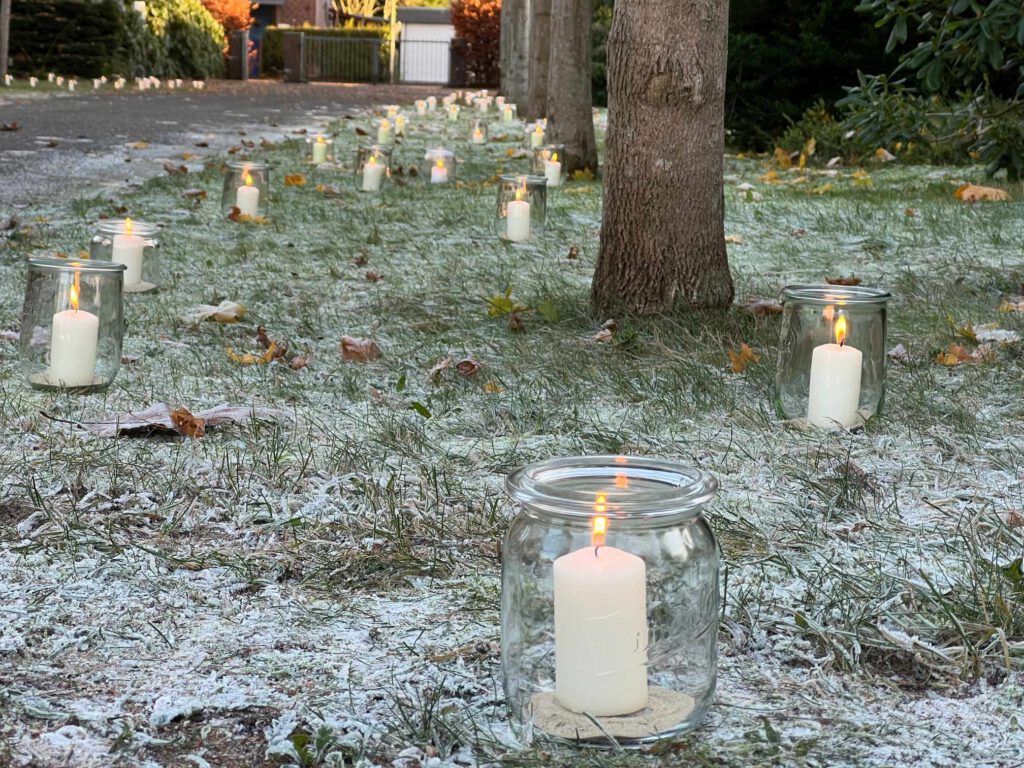 Bei schönem frostigen Wetter konnten wir wieder unsere Kerzen auf den Hauptwegen aufstellen, die den ganzen Tag bis in die Dunkelheit eine zauberhafte Stimmung verbreiteten.
